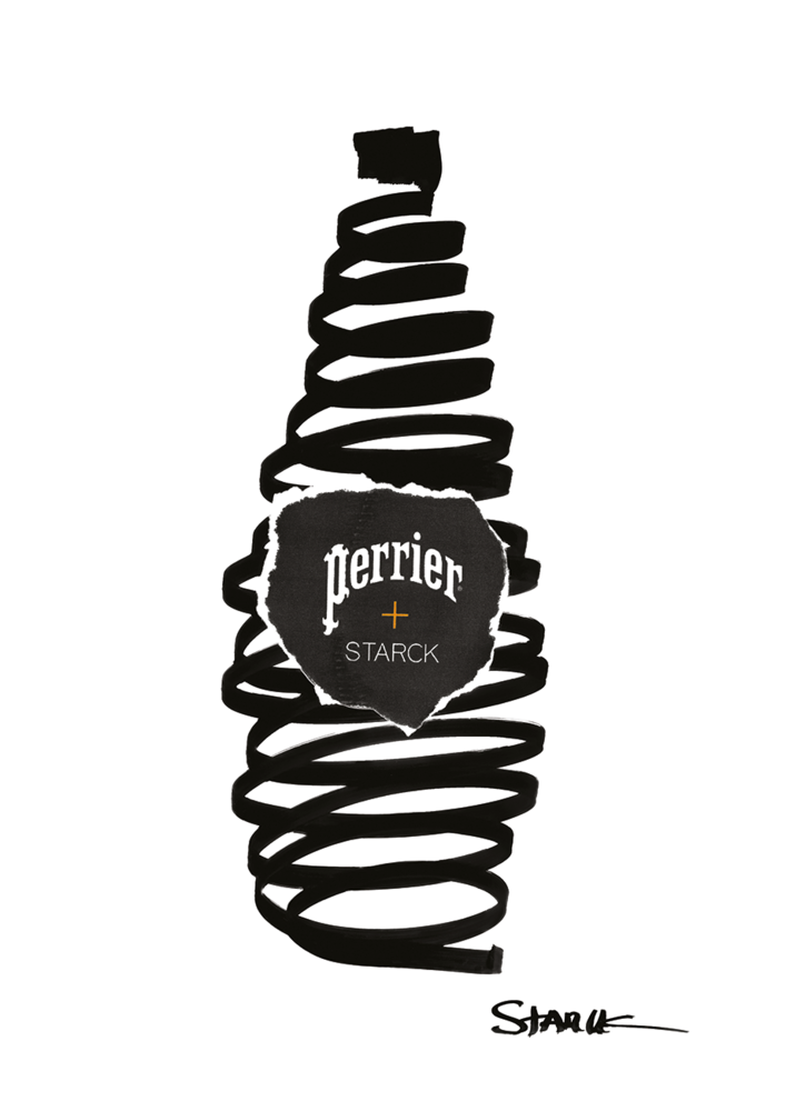 “Dünya çapında tanınan bir sembol ve Fransız mirasının bir anıtı olan Perrier, ikonik şişesinin tasarımını yeniden tasarlamak için bana başvurdu. Bir simgenin özünü değiştirmeden tutarak, mevcut parametreleri zamansız bir forma uygulamak için şekli bozmak ve onunla oynamak mümkündür. Doğal bir sağlamlık yaratan bu son derece teknik yatay çizgi ekleme işiyle yaptığım şey buydu, Ama bu sadece teknikle ilgili değil, aynı zamanda bilinmeyeni keşfetmekle de ilgili. Projemde bilinmeyen, her baloncuğun bir büyüteç olması ve yapıyı bir Fresnel merceği şekillendirmek için kullanarak, şaşırtma ve fantezi kıvılcımı getiren optik bir sürpriz yaratabileceğim fikri üzerine kurulu.” diyor Philippe Starck.