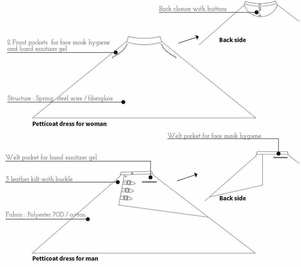 Petticoat Dress yakın gelecekte modayı şekillendirecek olan şeyin sosyal mesafe kuralı olduğunu gösteriyor belki de. Günlük eteklerden mayoya kadar hem erkekler hem de kadınlar için farklı versiyonları mevcut. Koleksiyon, insanlara yüzerken bile sosyal mesafeye saygı duymayı yaratıcı ve biraz da esprili bir şekilde hatırlatan bir “iletişim aracı” olarak nitelendiriliyor. Böylece kuralı ihlal eden komşunuz ya da markette dibinize giren insanlar yüzünden sinir harbi yaşamak yerine giysilerinizle sözünüzü söylemiş oluyorsunuz. Kamusal alanlardaki güvenli alanınıza yönelik saldırı ve tehditlerden de tamamen korunmuş oluyorsunuz.