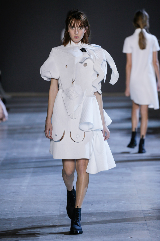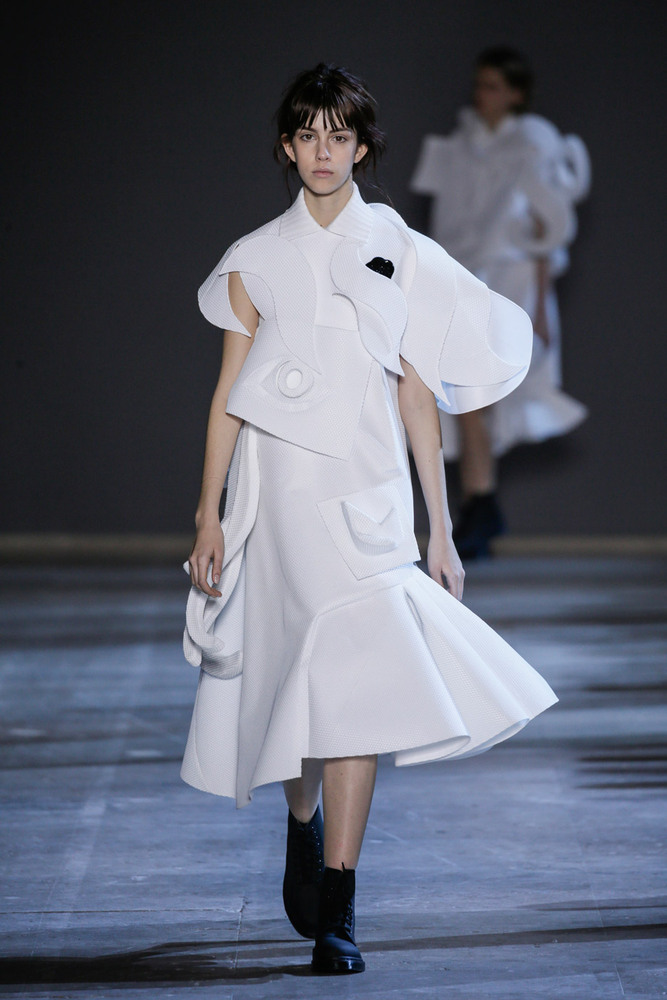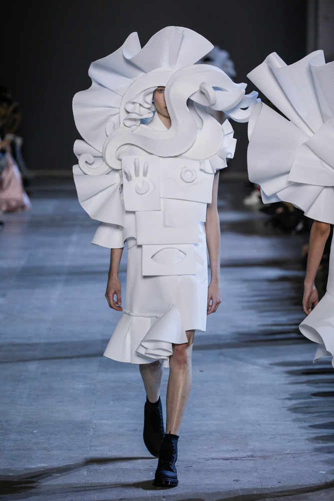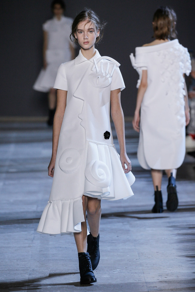 Viktor&Rolf’un beyazlar içindeki 2016 İlkbahar-Yaz koleksiyonun çıkış noktası basit, beyaz bir polo tişört olmuş. İspanyol Kübist sanatçılardan Pablo Picasso’nun eserlerinin kumaşlara formunu verdiği giysiler, bembeyaz ve pürüzsüz görünümleriyle giyilebilir birer heykel gibiler.