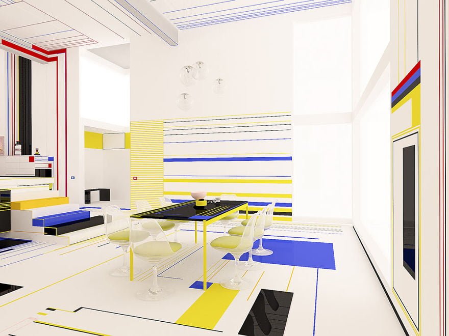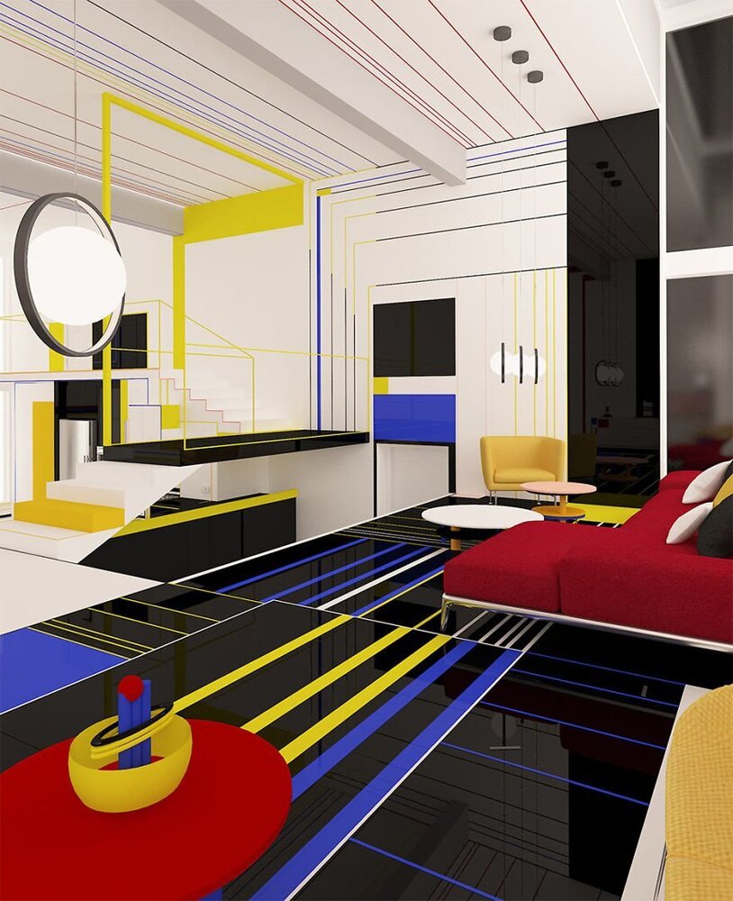 Piet Mondrian tablosu iç mekan tasarımına dönüştü