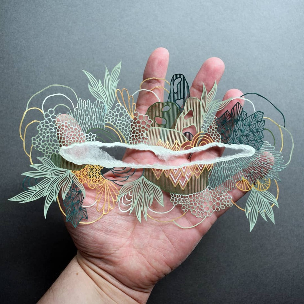 Günümüz sanatçıları, kağıt kesme tekniğiyle inanılmaz detaylara sahip işler ortaya koyuyor. Parth Kothekar’ın bu teknikle yarattığı geleneksel hint mimarisi illüstrasyonları, Kanako Abe’nin vahşi yaşam tasvirleri, Mr Riu’nun kağıt mandalaları ve Myriam Dion’ın gazete kağıtlarını keserek hazırladığı kompozisyonlar en etkileyici örneklerdendi. Pippa Dyrlaga da doğa ve anatomi temalı çalışmalarıyla son yılların ilgi çeken sanatçılarından. Şimdi Pippa Dyrlaga, rengi de işin içine katarak yaptığı daha karmaşık kompozisyonlarla internetin dikkatini çekiyor.