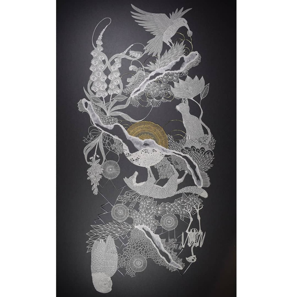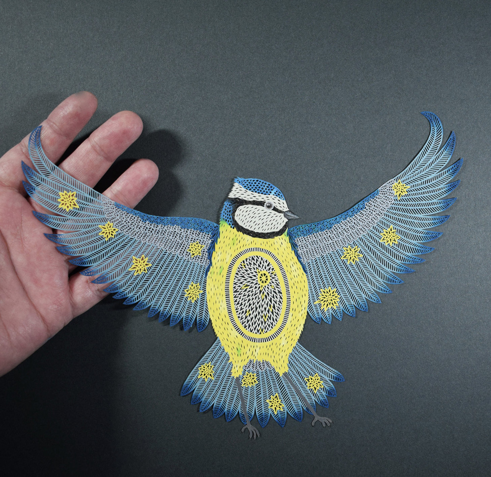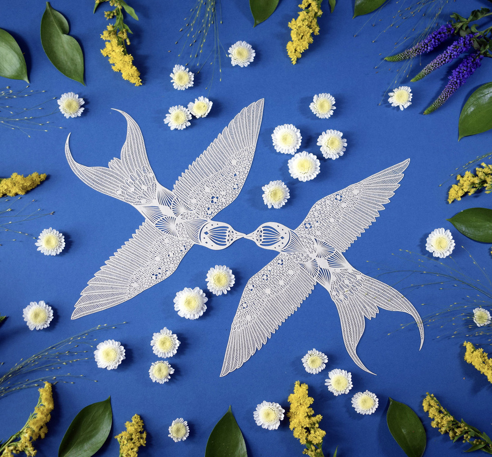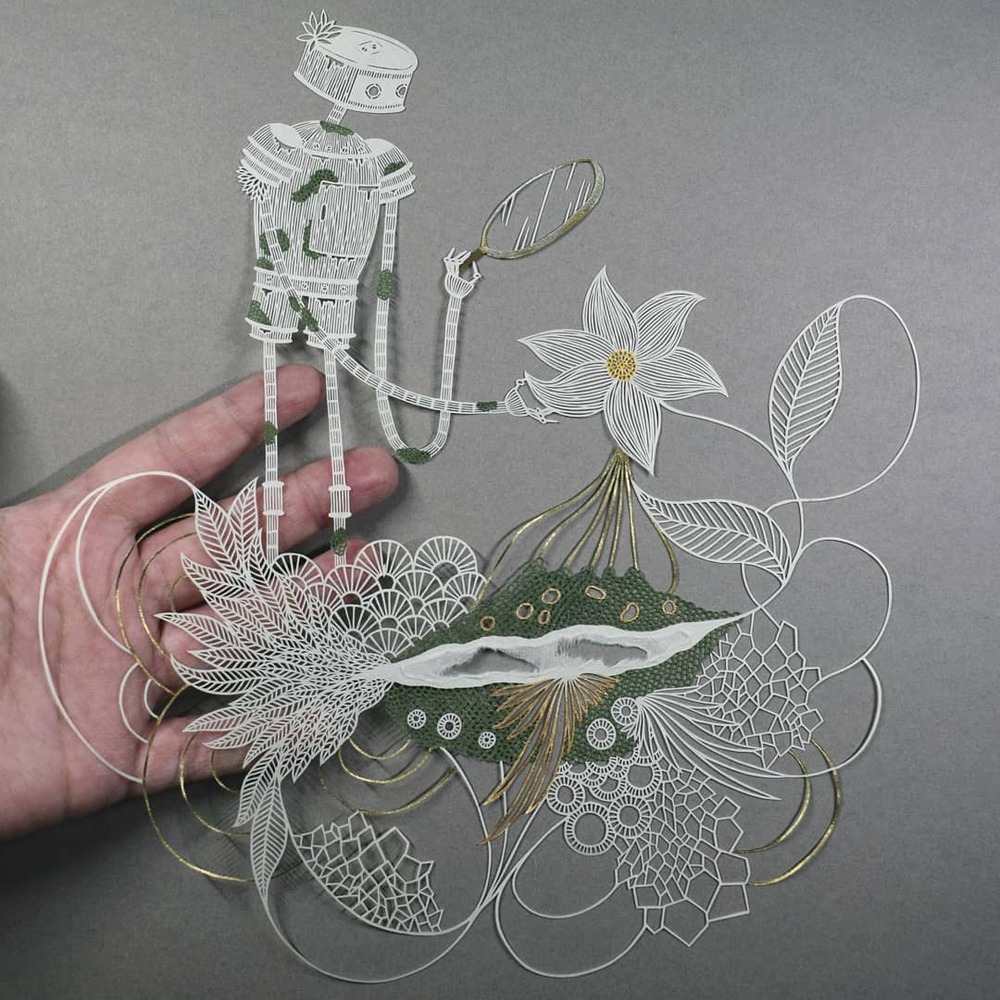 Pippa Dyrlaga’ya göre bir parça kağıt, içinde çok fazla olasılık barındırıyor. Yorkshire merkezli sanatçı, beyaz kağıtla yaptığı işlerin her birini tek bir sayfadan keserek üretiyor. Doğa manzaraları, kuşlar, mitoloji, karmaşık hayvan ve bitki kompozisyonları, robotlar ve doğaüstü varlıklar Dyrlaga’nın konusu olabiliyor. En etkileyici serilerinden biri de fotoğraflarla kağıt kesme sanatını birleştirdiği işler.