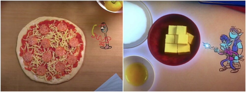 Serinin ilk videosunda, 2018 yapımı Oscar ödüllü kısa animasyon Bao’nun aynı adı taşıyan yemeğinin tarifi veriliyor. Toy Story 4 karakterlerinden Forky pizza tarifi için tezgahta yerini alırken Onward animasyon filminden Ian ve Barley doğum günü pastasına yardım etmek için kolları sıvıyor.
