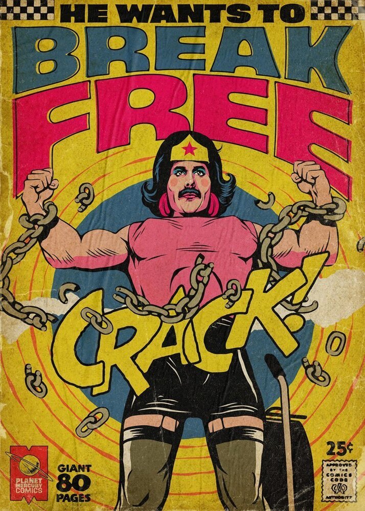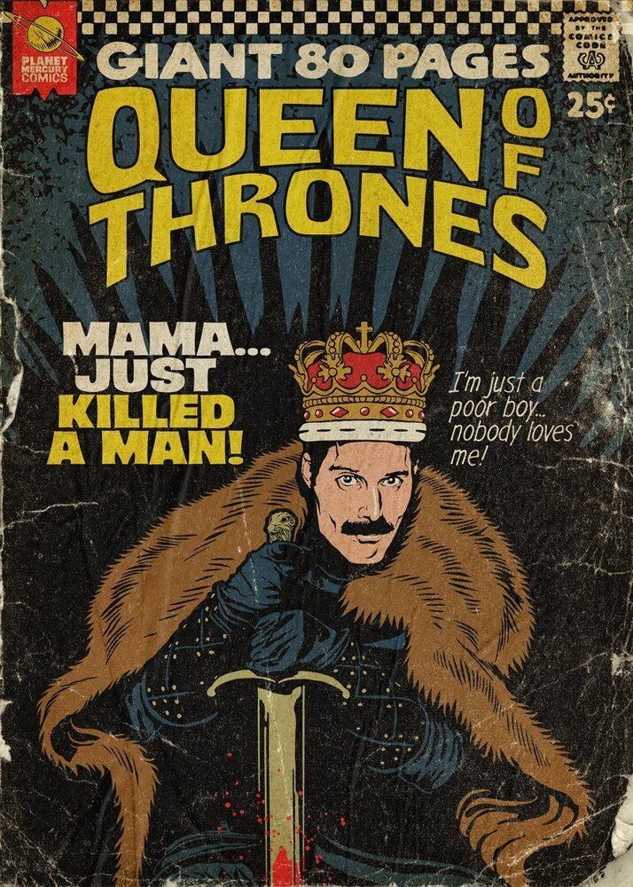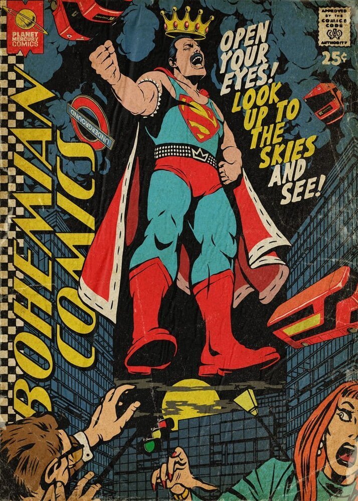 Pek çoğumuz için dünyanın gelmiş geçmiş en iyi solistlerinden biri olan Freddie Mercury; sahnedeki duruşu, kostümleri, şovu ve saymakla bitmeyecek eşsiz özellikleriyle ölümsüz bir sanatçı. Dolayısıyla yaratıcı bünyeler için o, müziğin yanı sıra kendine özgü stiliyle de tam bir ilham kaynağı. Bugün internette küçük bir araştırma yaptığınızda sanatçıların ve tasarımcıların bir ikon olarak onun görsel kimliğine yer veren çok sayıda proje ürettiğine şahit oluyorsunuz. Butcher Billy’nin Planet Mercury Comics serisi de bunun en etkileyici örneklerinden biri. Bu seride Freddie Mercury; Superman, Flash, Dr. Manhattan, Hulk, Joker, Star Wars ve Game of Thrones temalı kapaklarla bir süper kahraman olarak tasvir edilmiş.