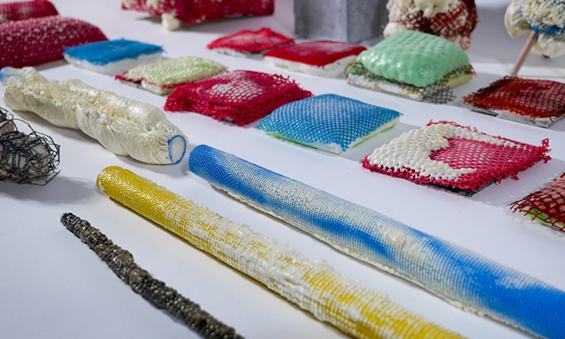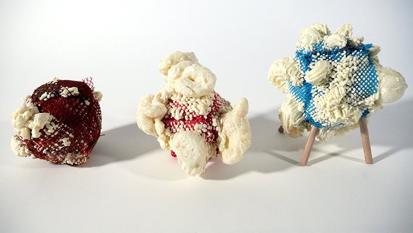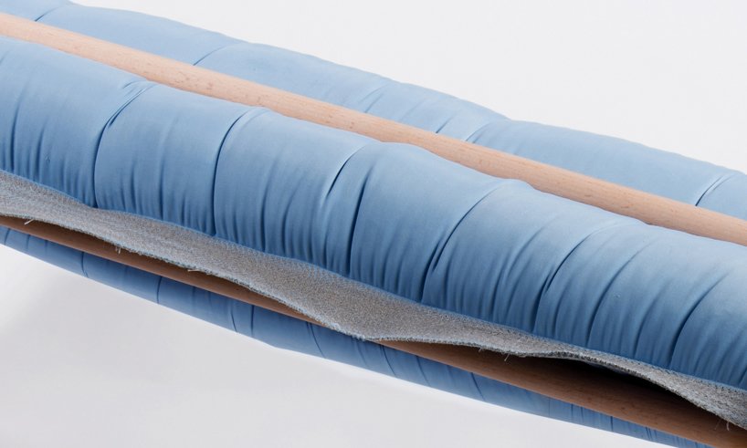 Tasarımcı, mobilyalar üzerinde çalışmaya başlamadan önce çok sayıda kumaş çeşidine ve kumaşa sarılmış ahşap iskeletler üzerine poliüretan enjekte ederek ilk deneyleri yapmış.