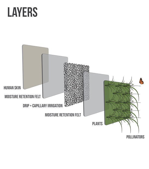 Giyilebilir peyzaj sistemi olarak da nitelendirilen proje; doğa-kültür, insan-makine arasındaki flu sınırları keşfediyor. Teknoloji aracılığıyla yaşadığımız deneyimleri temsil eden karma ekolojileri ve sentetik doğa biçimlerini kutluyor. Bedenlerimizi yeniden doğanın bir parçası olarak konumlandırıyor.