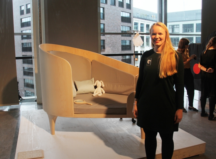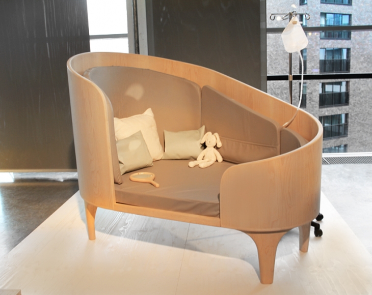 Koltuk; annenin rahatça, ayaklarını uzatarak oturabileceği kadar geniş, etrafı çevrili ve sırt kısmı yüksek tasarlanmış. Tasarımda kullanılan ahşap ve yapay deri de daha organik bir ortam sunarak anne ve bebeğin hastanedeki teknolojik gereçlerin yarattığı soğukluktan sıyrılmasına yardımcı oluyor.