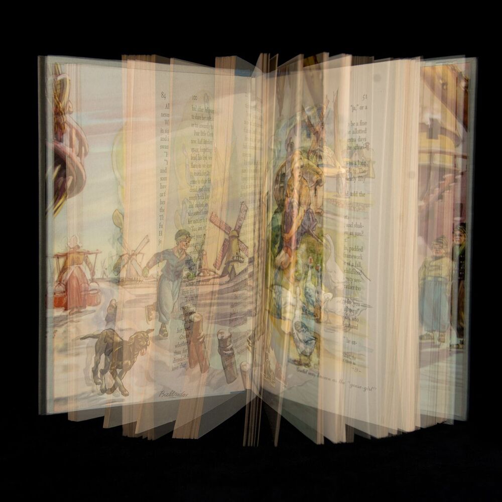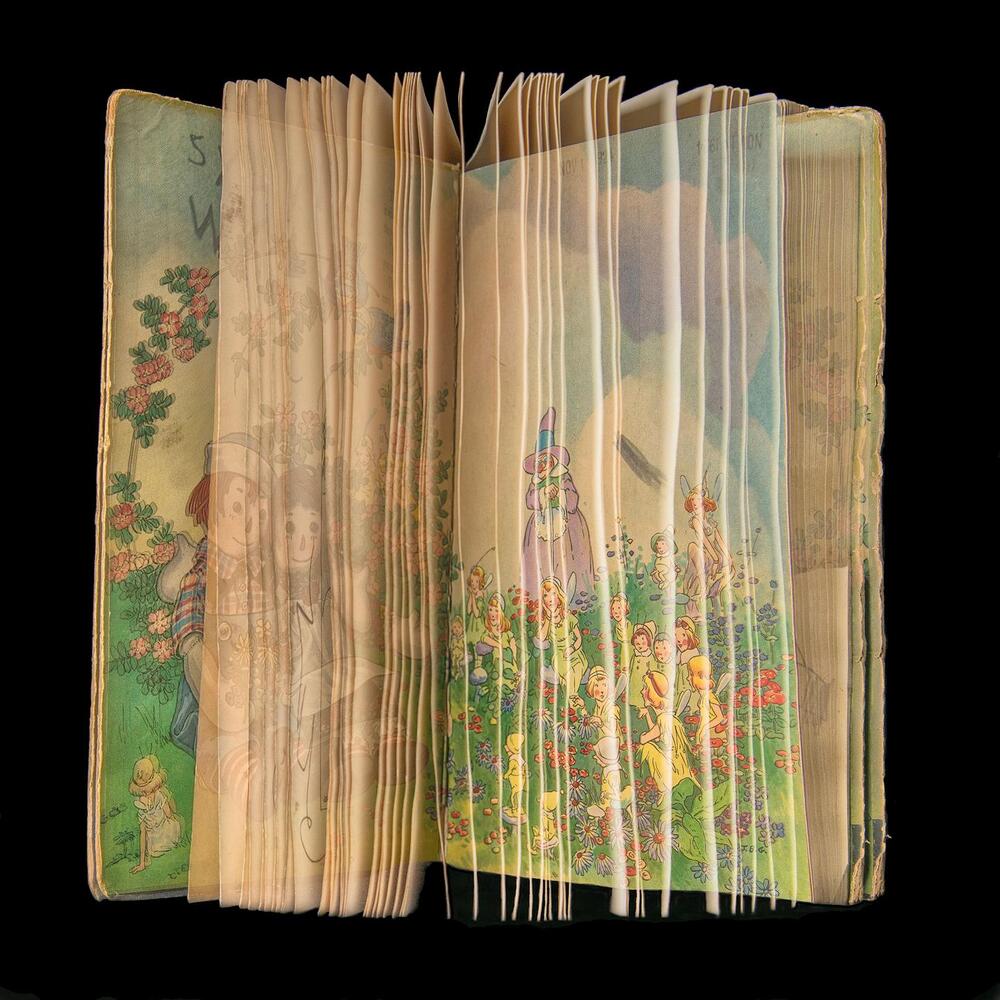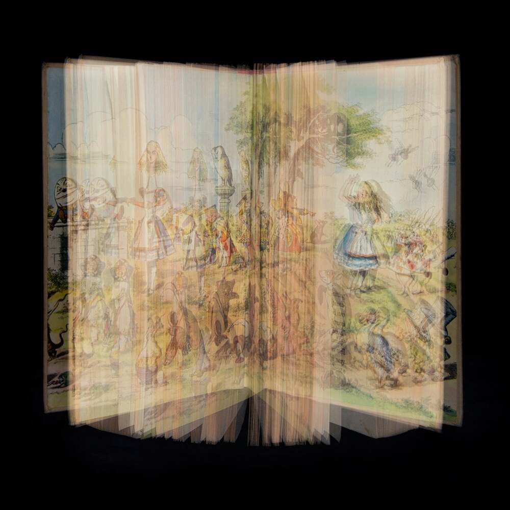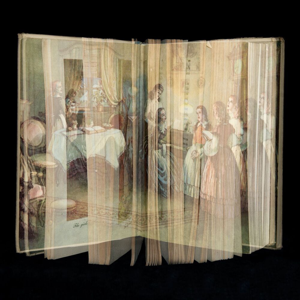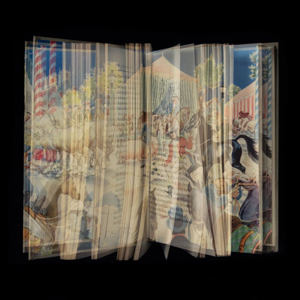 Ellen Cantor Photoshop kullanmadan tamamen çoklu pozlama tekniğiyle ilerlemiş ve kitapların sayfalarını tek bir görüntüde birleştirmiş. Her görüntü, siyah bir arka plan üzerinde tek bir kitaba odaklanıyor.