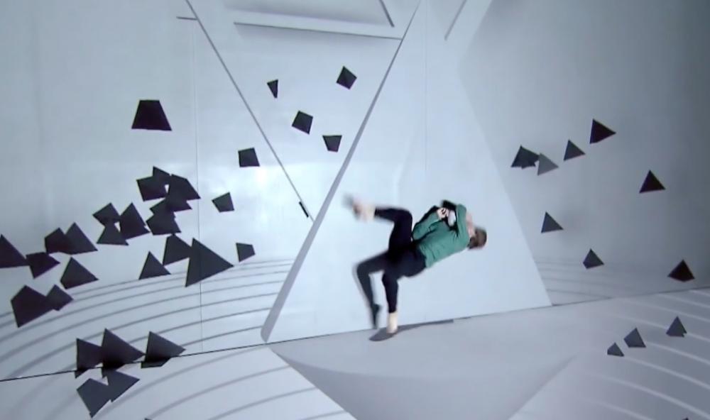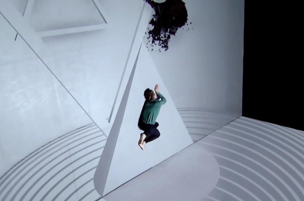 Bir duvara iğnelenmiş bir kuklaymış izlenimi veren dansçı, seyircilerin algılarıyla oynuyor ve sürekli olarak hangi duvarın zemin olduğu sorusunu sorduruyor. 90 derecelik açıyla birbirine bağlı iki yüzey arasında yer değiştiren sanatçı, hiçbir kamera hilesinden faydalanmıyor.