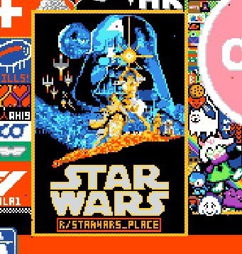 Hırsız polis, katil kim, vampir gibi oyunları baz alan, ekip içindeki birinin katil olduğu oyun Among Us‘ın karakterleri kanvas üzerinde her yerdeydi. Saklanmak üzerine kurulu olan oyunun karakterleri kanvas üzerinde de gizlenmişti. Hatta öyle ki saklandığı tasarımı bozmadan birkaç piksel ile gizleniyordu. Star Wars afişi içinde gizlenmiş küçük karakterleri görebilirsiniz.