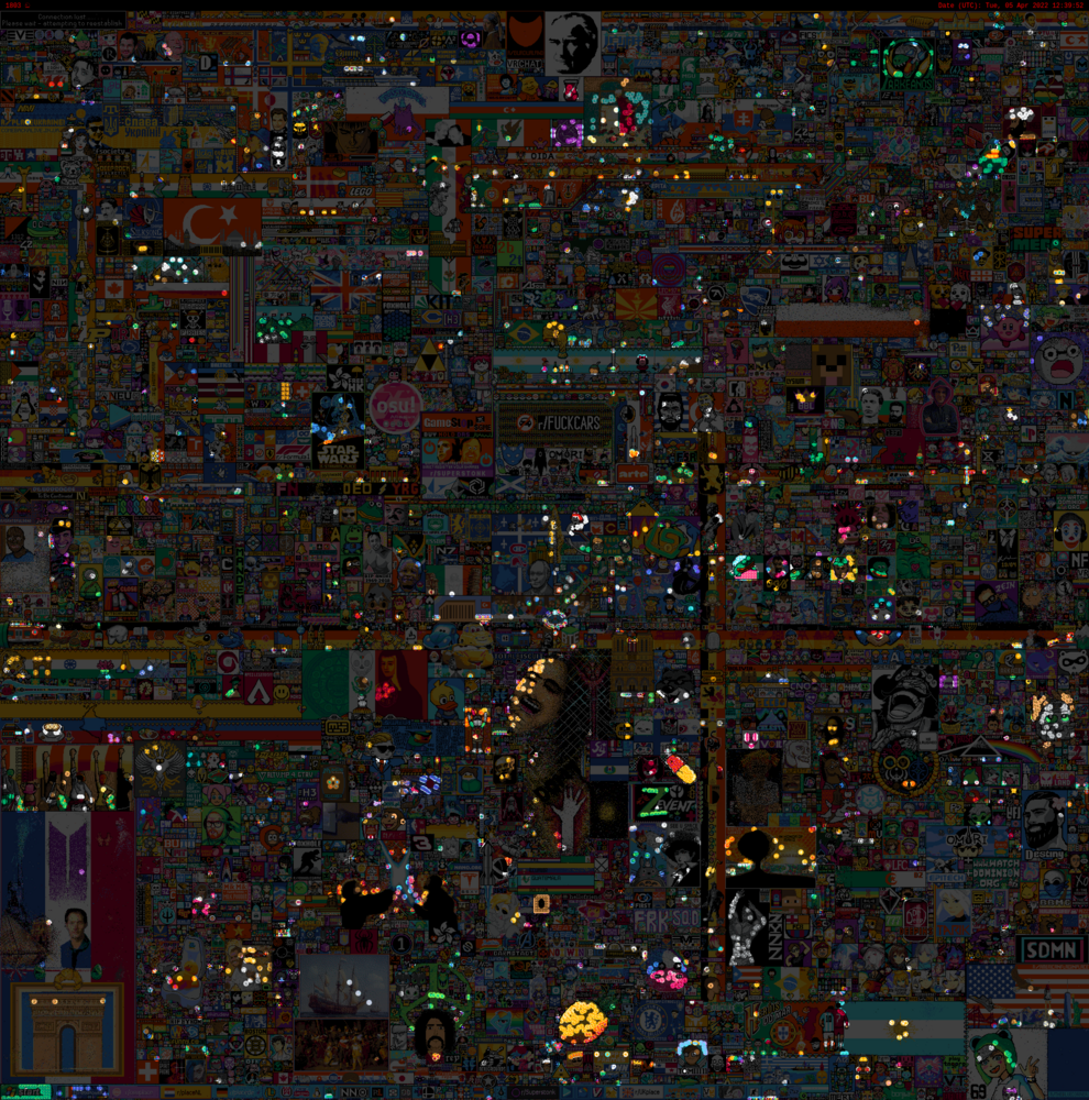 Doğrudan r/place’teki bir post ile mehteri veriyorum. Kanvas üzerinde en fazla pikseli olan 30 topluluğun eserlerini ise aşağıda bulabilirsiniz, tam boyutlu hali ise bu bağlantıda.