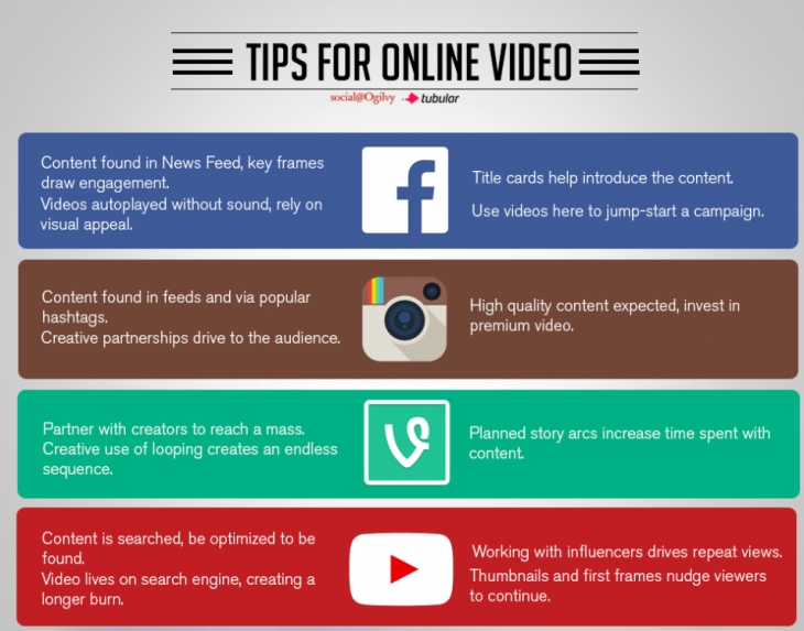 Social@Ogilvy’nin hazırladığı infografikler, pazarlamacı ve reklamcılara farklı video platformlarının nasıl çalıştığını daha iyi anlayıp, platformları nasıl daha verimli kullanabilecekleri konusunda fikir veriyor.
