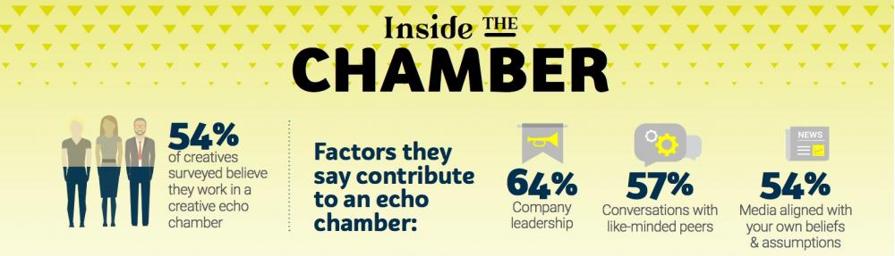 Küresel iletişim şirketi Ketchum ve iş dünyasının en önemli yayınlarından Fast Company iş birliğiyle gerçekleştirilen Creative Echo Chamber araştırması; reklam yaratıcıları arasındaki yankı odası etkisini inceliyor. Araştırma sonuçları; zaten tahmin edebileceğimiz bir sonucu doğruluyor ve yaratıcı alanda çalışanların da yankı odası etkisine maruz kaldığını söylüyor.