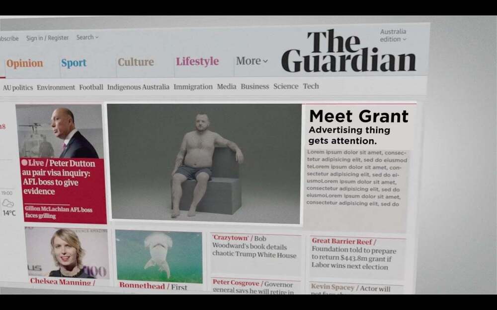 “Meet Grant”in arkasındaki ekip, reklamcılıkta bir kariyer yaşamak için bu anatomik özelliklerin gerekli olduğunu reklamda belirtiyorlar: çakışan görüşleri filtreleyen kulaklar, kampanya brief’i üzerine dolambaçlı yorumları saptırmak için olağandışı kalın cilt, bol miktarda alkolü işlemek için yardımcı bir karaciğer, telafi edecek bir şey olarak ortalamadan küçük cinsel organlar ve müşteri toplantıları için tamamen çıkarılabilir bir omurga. Ayrıca film şunu da not düşüyor. Grant tabii ki beyaz bir erkek.