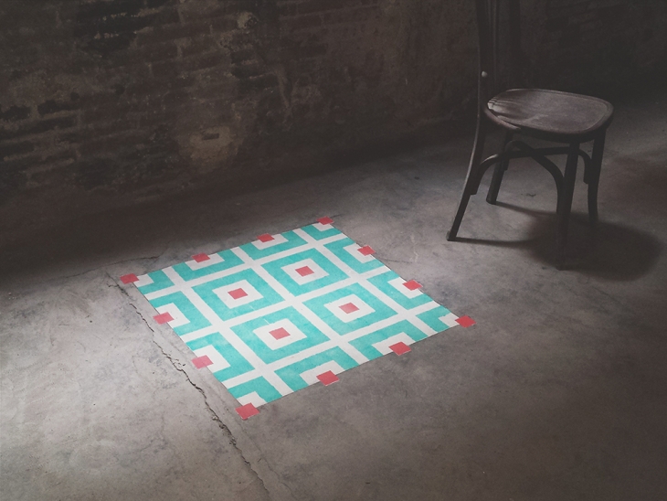 Javier de Riba, harabeye dönmüş evlerin duvarlarını ya da dışlarını değil, zeminlerini renklendirmeyi tercih ediyor. Malzeme olarak kullandığı sprey boya, aklınıza klasik graffiti çalışmalarını getirmesin. Riba, sprey boyaları kullanarak yerleri sanki karoyla döşenmiş izlenimi yaratacak şekilde, geometrik ve detaylı desenlerle süslüyor.