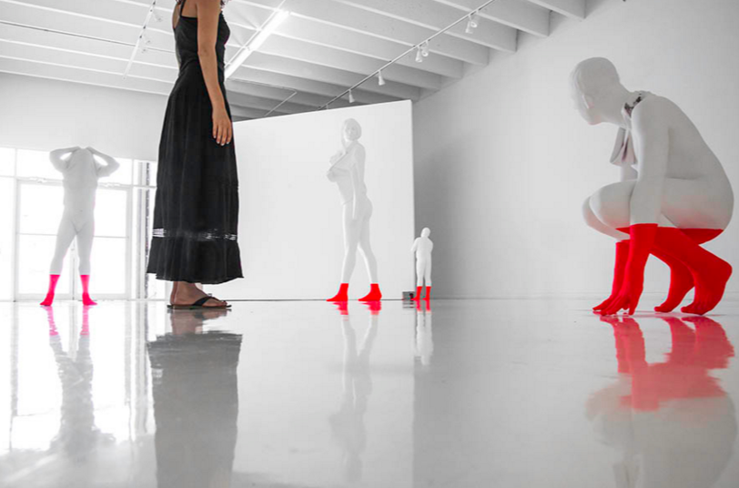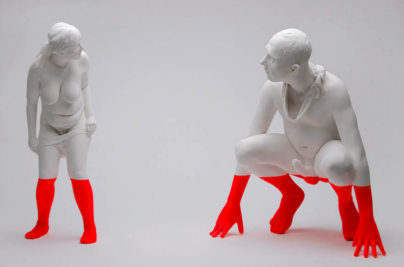 West, nü heykel çalışmalarını ise keskin neon boyalamalarla süslüyor. Bembeyaz figürlerin belden aşağılarını ya da sadece bacaklarını neon renklerdeki boyalara batırarak, keskin çizgilerle ikiye bölüyor. Bazense figürlerin beyaz durağanlığını canlı renkteki sprey boyalarla bozuyor.