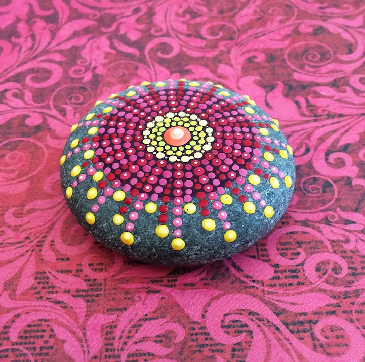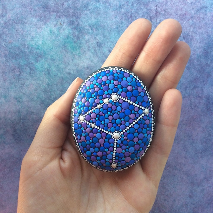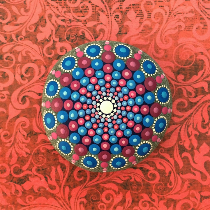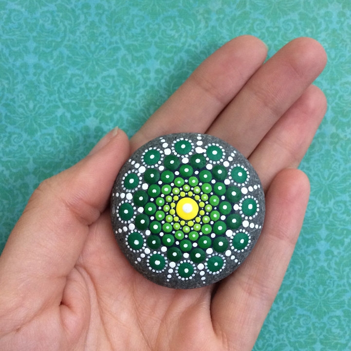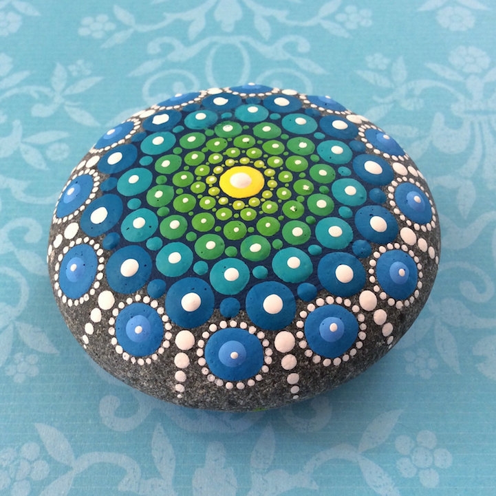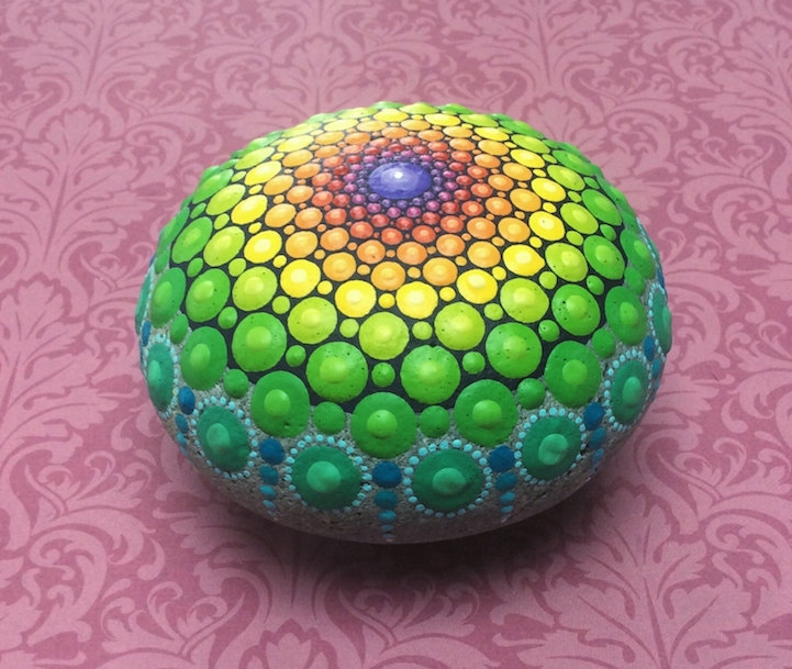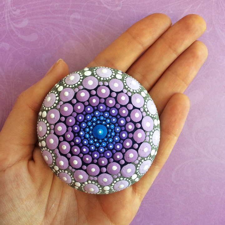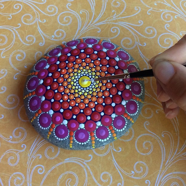 Avustralyalı sanatçı Elspeth McLean, pürüzsüz, yuvarlak okyanus taşları üzerine çizdiği mandala desenlerini incecik bir fırça ve akrilik boya kullanarak elde boyuyor.
