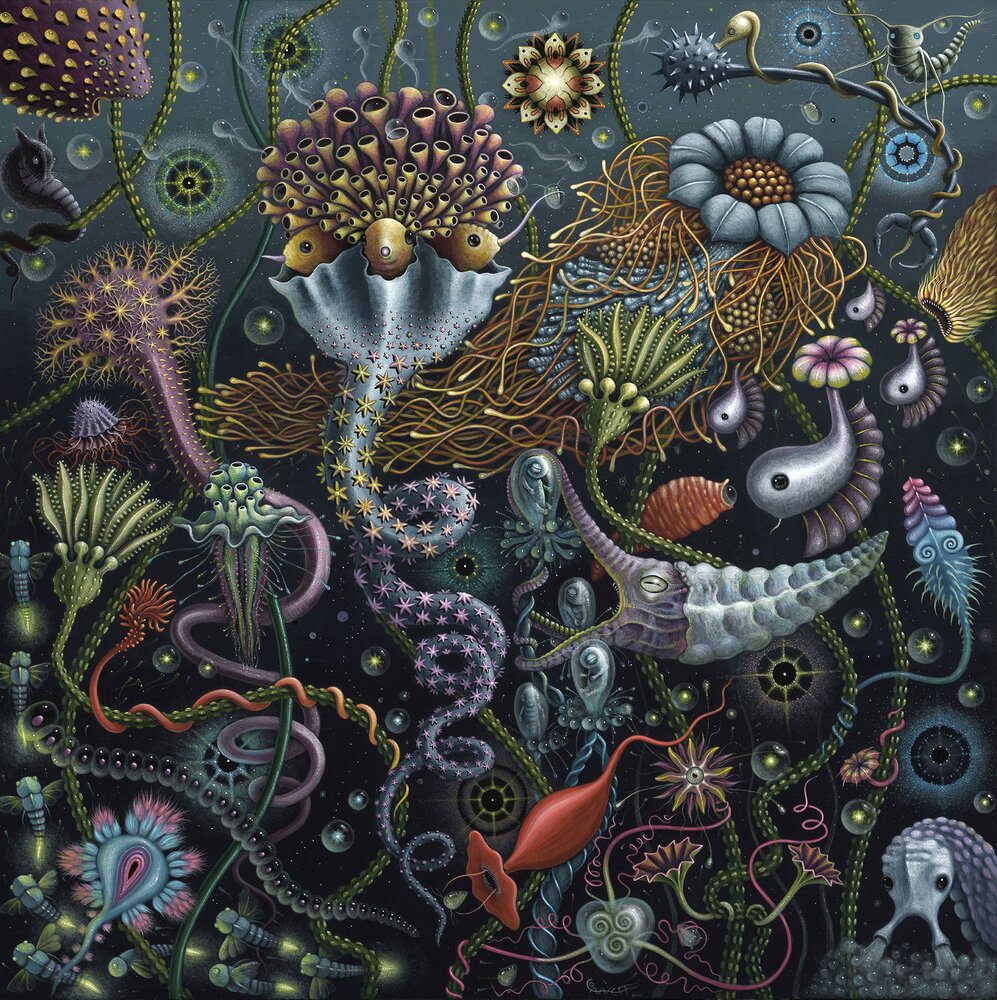 Deniz yaşamı ve mikroskobik canlıların dünyası sanatçıların sıkça ilham aldığı alanlardan. Vladimir Stankovic’in efsanevi yaratıklardan ve deniz canlılarından hibrit karakterler yarattığı Creatures of the Deep serisi ve Catriona Secker’ın biyoloji kitaplarından esinlenerek yarattığı tuhaf varlıklar bunun en güzel örnekleri. Robert Steven Connett da aynı alanlardan ilham alarak canlı renklerde ve oldukça detaylı tablolar yapıyor.