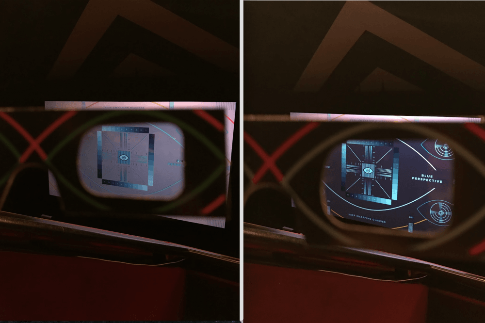 Yukarıda gözlükleri, aşağıda da beyaz perdedeki görüntüye bakarken kullanıldıklarında nasıl farklı imajlar sunabildiklerini görebilirsiniz.