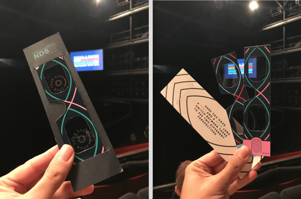 İlk video, Saatchi & Saatchi’nin hazırladığı videoydu ve bu videoyu içeri girerken verilen iki farklı gözlükle izlemek mümkündü. Videonun konusu doğumdan itibaren iki farklı cinsiyetteki insanlara nasıl farklı mesajlar verildiğiydi ve görüntüler de gözlükleri değiştirdikçe farklı bir hikaye anlatıyordu. Dinamik ve etkileyici bir filmdi.