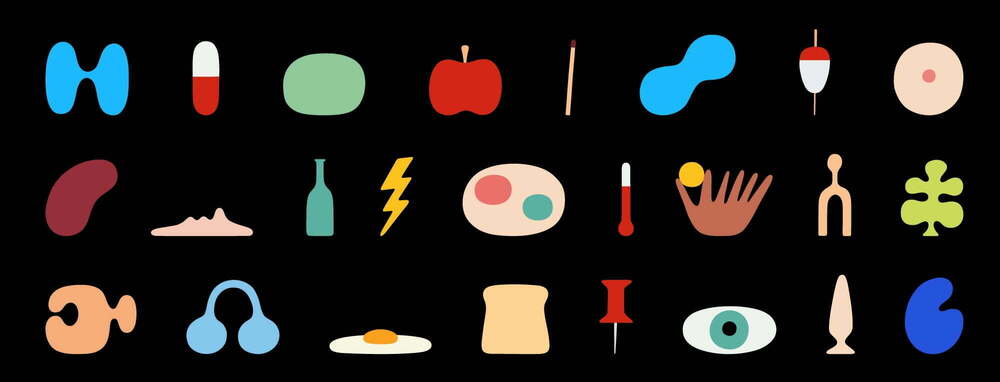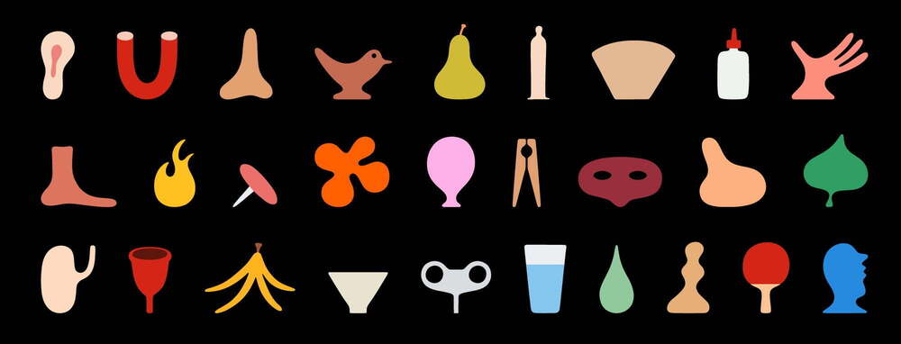 Sade çizimlerin ve temel renklerin birleşimiyle oluşan seride askı, terlik, radyo, masa tenisi raketi, raptiye, yeşil zeytin, dere otu ve hatta bazı seks oyuncakları da yer alıyor. Emojilerin yanı sıra duyguları temsil eden bir dizi emoji de Emoji Library içerisinde bulunuyor.