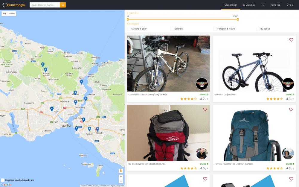 İTÜ Çekirdek bünyesinden çıkan Bumerangla, paylaşım ekonomisini kullanarak dönemsel ihtiyaçlarınızı karşılamanızı sağlıyor. Eşyalar için Airbnb gibi bir modele sahip olan servis, elinizdeki açık hava sporu, eğlence ve fotoğrafçılık gibi kategorilerdeki ürünlerin atıl kaldığı zamanı değerlendirmesi esasına dayanıyor. Kiraya verenler o an ihtiyaçları olmayan bu ürünlerden gelir elde ederken kiralayanlar da bu kısa süreli ihtiyaçlarını kolayca ve devasa masraflar yaratmadan çözüyor.