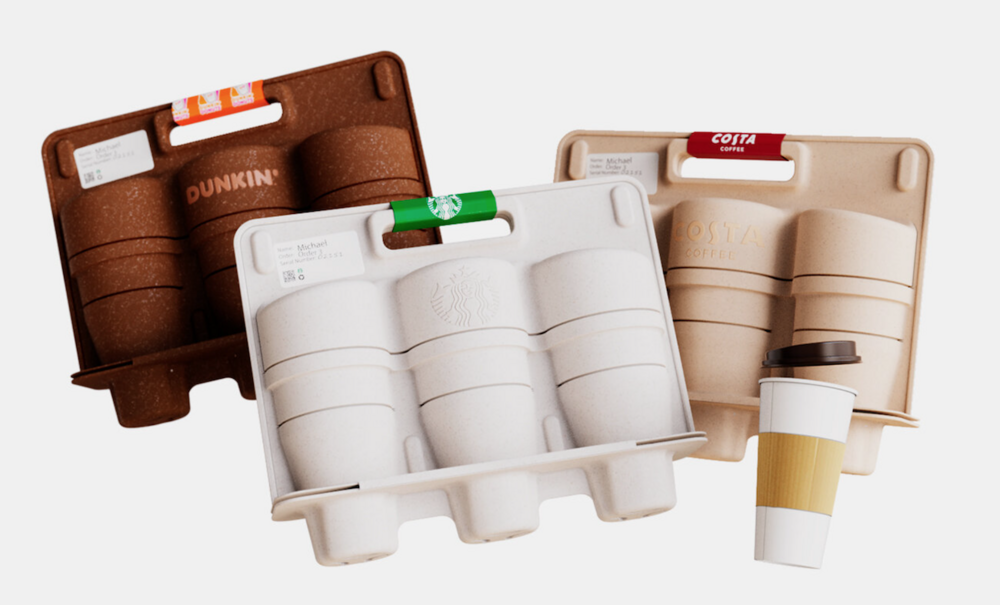 NOS‘un bardak taşıma çantası; farklı fincan boyutlarına uyabilen, içecekleri saklamak için entegre bir tepsisi olan, ısıyla şekillendirilmiş bir kapaklı sisteme sahip. Ayrıca siparişin hazırlanmasından teslimata kadar her aşama düşünülerek tasarlanmış. İç içe geçerek istiflenebilen profili, tezgah alanını optimize ederek baristaların içecekleri doğrudan içeriye yerleştirmesine, ardından kapatıp dağıtıma paslamasına olanak tanıyor. Hafif, tek malzemeli kağıt hamurundan üretilen çevre dostu tasarım, içecek sıcaklıklarını koruyor. Üstelik üretiminin de kolay olduğu vurgulanıyor. Özelleştirilebilir malzeme ve renk seçenekleriyle farklı şirketlerin, farklı dağıtım sistemlerine uyum sağlayacak şekilde kurgulanmış.