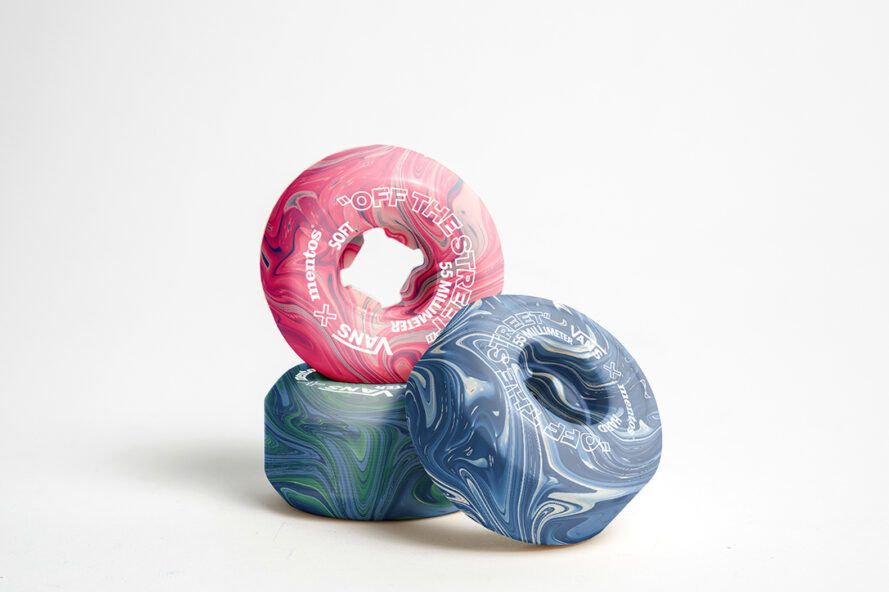 Proje, Fransa’nın uluslararası tasarım okulu L’école de Design Nantes Atlantique öğrencileri Hugo Maupetit ve Vivian Fischer tarafından geliştirilmiş. Amaçları sakızın kentlerde yarattığı kirliliğe son vermek. Bu malzemeyle çok şık renkli tekerler ortaya çıkması da ayrı bir avantaj. Ekip, gelecekte Avrupa’nın en büyük sakız üreticilerinden biri olan Mentos ve tanınmış paten markası VANS arasında spekülatif bir işbirliği sağlamayı da hayal ediyor.