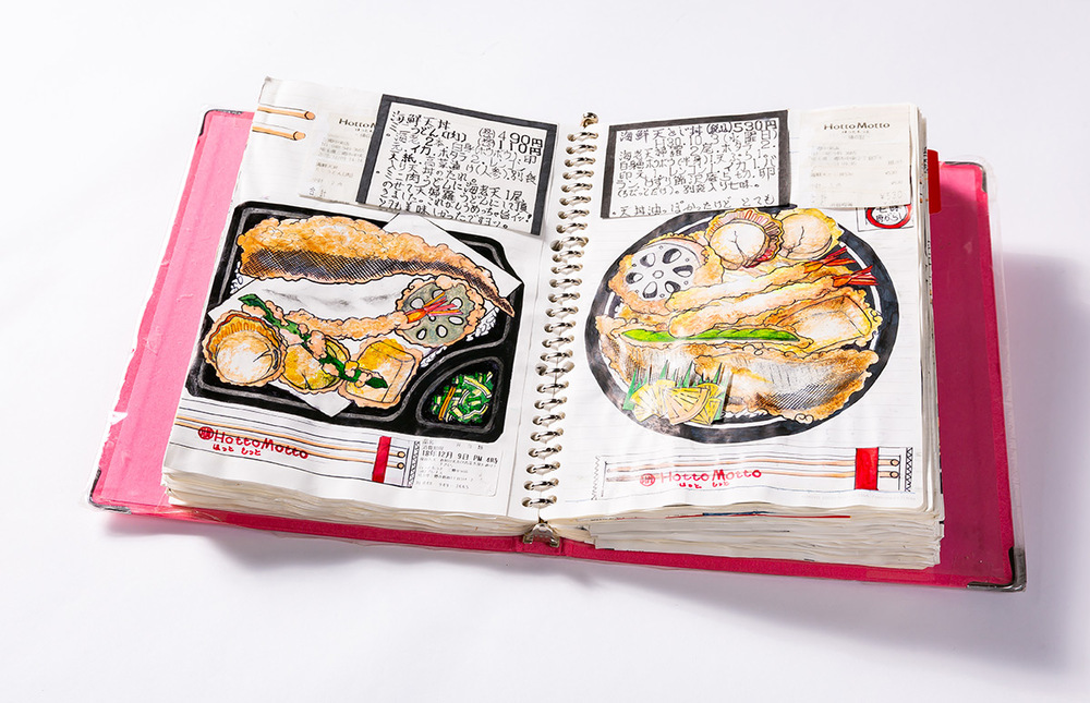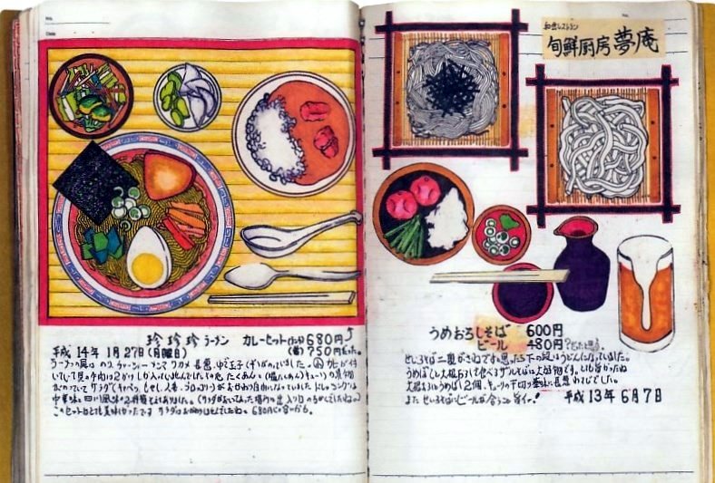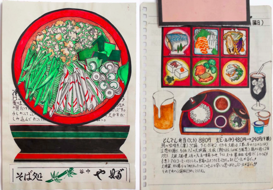 Günlük tutmak sanatçılar için başlı başına bir yaratıcı pratik. Özellikle seyahat günlüklerinde bunu sıkça gözlemliyoruz. José Naranja’nın el yazması günlükleri ve Angela Mckay’in sulu boya seyahat günlükleri yakın zamanda karşımıza çıkan en güzel örneklerdendi. İllüstrasyonla, mimari nakışlarla, GIF’lerle ve karikatürlerle tutulan günlükler de gördük geçmişte. Bu alanda radarımıza takılan bir başka sanatçı ise yemek günlükleri tutan Itsuo Kobayashi.