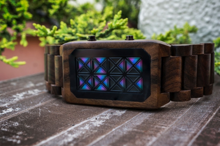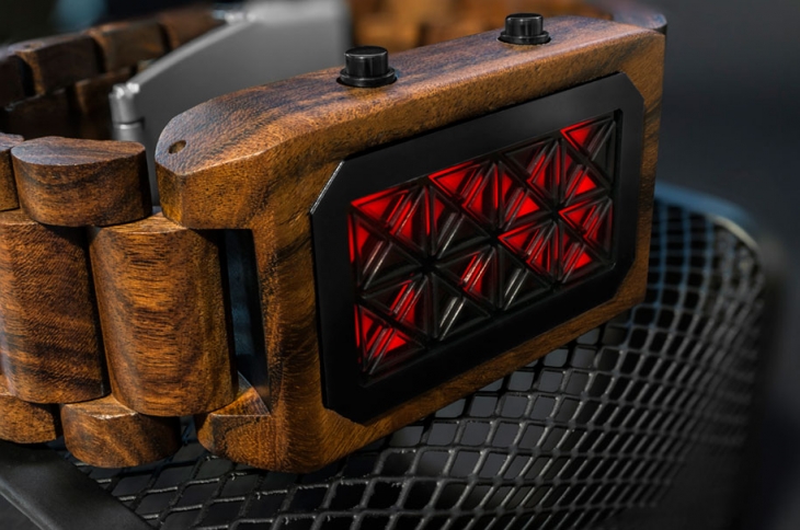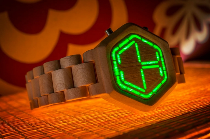 Tokyo Flash’ın Kisai Link Wood saat serisindeki ahşap kol saatleri, doğal ve sade görüntülerine ters düşen bir özelliğe sahip: Ahşap saatlerde akrep ve yelkovan işlevini saatlerin içlerine gizlenmiş LED’ler görüyor.