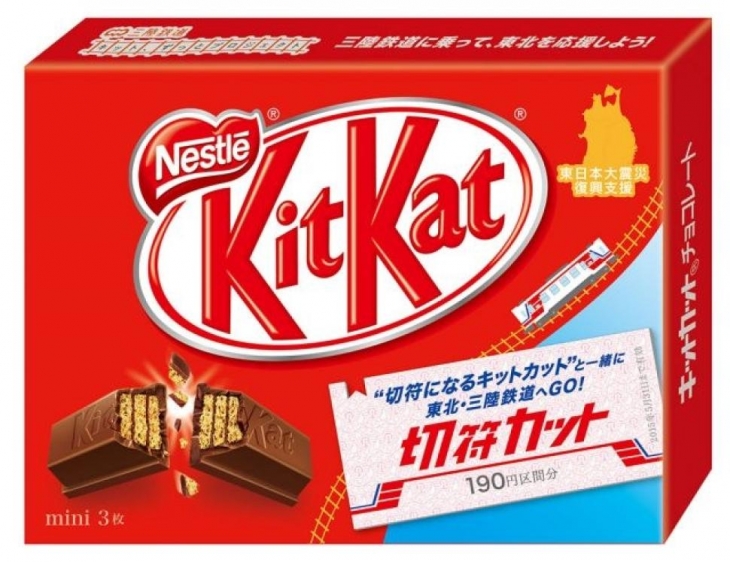 Japonya’da bulunan Sanriku demiryolunda bilet yerine KitKat çikolata barı geçiyor. Japonya’da insanlar birbirlerine şans dilemek için sık sık KitKat veriyorlar. Bunun nedeni KitKat sözcüğü ile Kitto-Katsu arasındaki ses benzerliği. Kitto-Katsu “sen kazanacaksın” anlamını taşıyan cesaret veren, teşvik edici bir kelime.