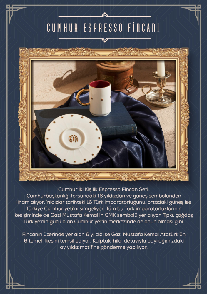 Filmde yer verilen Cumhuriyet Yüzyılı Koleksiyonu, Cumhuriyetin kuruluş döneminin ruhunu yansıtan parçalardan oluşuyor. Marka koleksiyon için “Yüz Yıllık Cumhuriyet’in anısına Yüz yıl saklanacak parçalar” ifadelerini kullanmış. Parçaların isimleri de “Cumhur Espresso Fincanı”, “Egemen Kahve Fincanı Seti” gibi isimlerden oluşuyor. Tasarımlar, isimleriyle ilgili sembolleri içeriyor. Örneğin Cumhur Espresso Fincanı, cumhurbaşkanlığı forsundaki 16 yıldızdan ve Atatürk’ün 6 temel ilkesinden ilham alıyor.