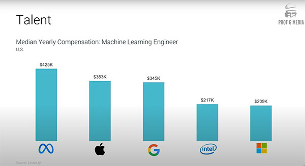 Scott Galloway, 2025’in en büyük yapay zekâ şirketinin Meta olacağını öngörüyor. Dünyadaki internet kullanıcılarının büyük çoğunluğu Meta platformlarını (Facebook, Instagram, WhatsApp) kullanıyor. Bu platformlar, AI’yi eğitmek için muazzam miktarda veriye erişim sağlıyor. Eğer Meta, sahip olduğu kullanıcı verisini ve AI altyapısını doğru yönetirse, OpenAI ve Google gibi şirketlerle rekabet edebilir.