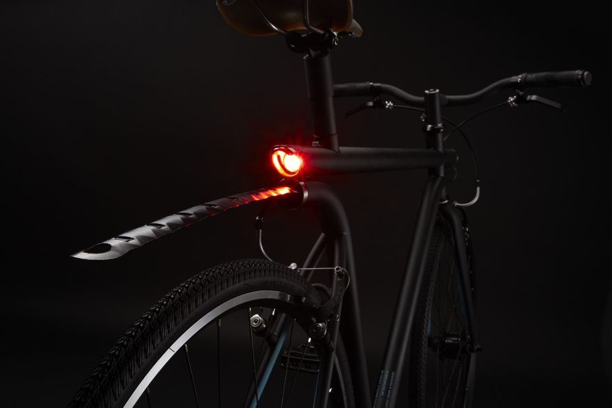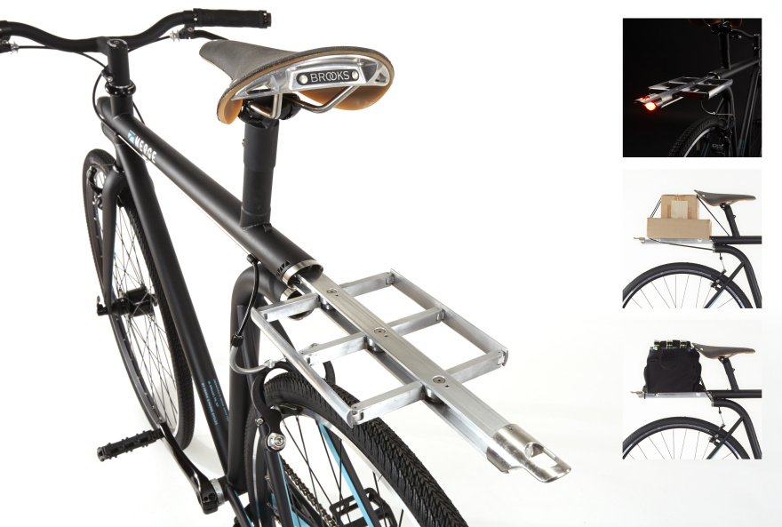 Arkadaki 2 portta da aydınlatma yer alıyor. Ancak, bu lamba, bir şeyler taşımak istendiğinde bisikletin gövdesinden bir butona basılarak çıkarılıp açılabilen ve katlanarak tekrar yerine yerleştirilebilen alüminyum bagaja entegre edilmiş. Ayrıca, bagajla benzer bir çelik yaylı sistemle çalışan çamurluk ve tekerlek kilitleme kablosu da arka bölüme gizlenmiş. U-lock holster ve USB şarj ünitesinin yakınına yerleştirilen çıkarılabilir, su geçirmez akıllı telefon kılıfı bisikletin diğer aksesuarları arasında yer alıyor.