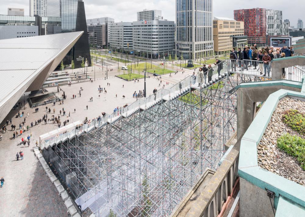 Tasarım ve mimarlık ofisi MVRDV, Rotterdam’ın 2. Dünya Savaşı’ndan sonra yapılan ilk büyük yapısı ve şehrin merkez istasyonu olan Groot Handelsgebouw‘un çatısına çıkan devasa bir merdiven yaptı. Geçici yerleştirme olarak hazırlanan ve 180 basamaktan oluşan merdivenlerin sonuna gelindiğinde hem şehre hem de kültür sanata dair birçok öğeyle karşılaşılıyor. Groot Handelsgebouw‘un çatısında, Kriterion sineması, farklı etkinlikler ve aktiviteler yer alıyor.