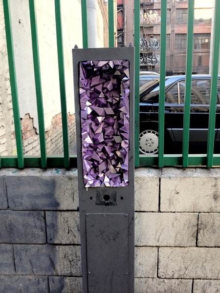 Bu çalışmayı anımsatan bir başka sokak sanatı projesi ise Los Angeles’ta yaşayan sanatçı Paige Smith’e ait. A Common Name adıyla geçen sanatçı, parlak kağıtlardan veya dökme reçineden jeot (“geode”) denilen volkanik kayalarda bulunan kristalli boşluk formunu elde ederek bir başka boşluk doldurma örneği sergiliyor. Legonun aksine doğada bulunan bir formu taklit ederek sanatçı, sanayi ve doğanın arasındaki gerilime işaret edip şehrin güzelliğini kutlamak amacıyla projeyi başlatmıştı.