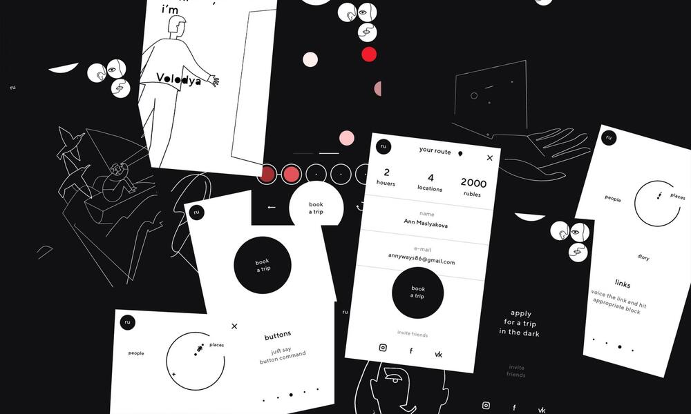 Moskova merkezli ajans Voskhod Trip in the Dark projesi için hazırladığı internet sitesi ile bu deneyimi yaşamak isteyen kullanıcıları ortak bir paydada birleştiriyor. Şehir turlarını fiziksel bir aktiviteden öte çevreyi saran sesler üzerinden gerçekleştiren görme engelli rehberler tura katılan katılımcılara şehrin farklı noktalarını dokunarak ve duyarak deneyimleme fırsatı sunuyor.
