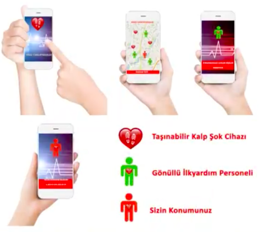 Proje kapsamında oluşturulmuş, akıllı telefonlara ücretsiz indirilen mobil uygulama acil durumlarda konum bilgilerini kullanarak olay yerine en yakın gönüllü “Ayaklı Cankurtaranlar”ı hayat kurtarmak için göreve çağırıyor ve ambulans gelene kadar hayati önem taşıyan ilk yardım desteğinin hastaya yapılmasını sağlıyor. Uygulamanın yapısı çok duru ve basit tasarlanmış: Acil bir durumda uygulamaya girip, Ayaklı Cankurtaran ikonuna tıklıyorsunuz. Uygulama önce otomatik olarak 112’yi arıyor. Siz ambulans için görüşmenizi yaptığınız sırada, o en yakınınızda bulunan gönüllü ilk yardımcıları ve otomatik kalp şok cihazlarını tarıyor ve onlara acil yardım çağrısı ve konum bilgisi gönderiyor.