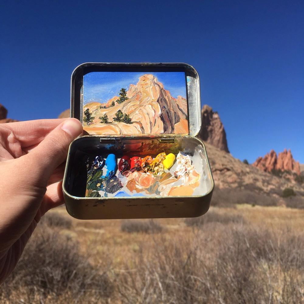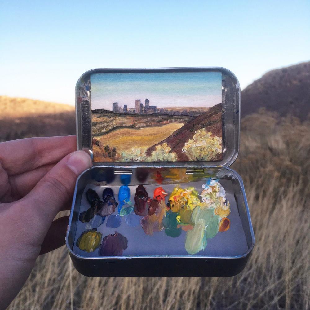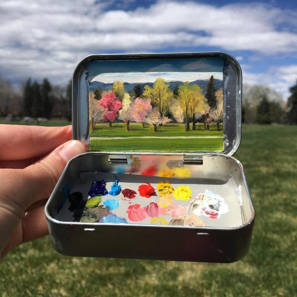 Colorado’da çalışmalarını sürdüren Amerikalı ressam Heidi Annalise, teneke şeker kutularının kapaklarına gizlenmiş çok küçük boyutlarda manzara resimleri yapıyor. ABD’de bulunan çeşitli doğa alanlarını izlenimci bir üslupla resmeden sanatçı, doğaya olan tutkusunu da bu minyatür tablolar aracılığıyla ortaya koyuyor.