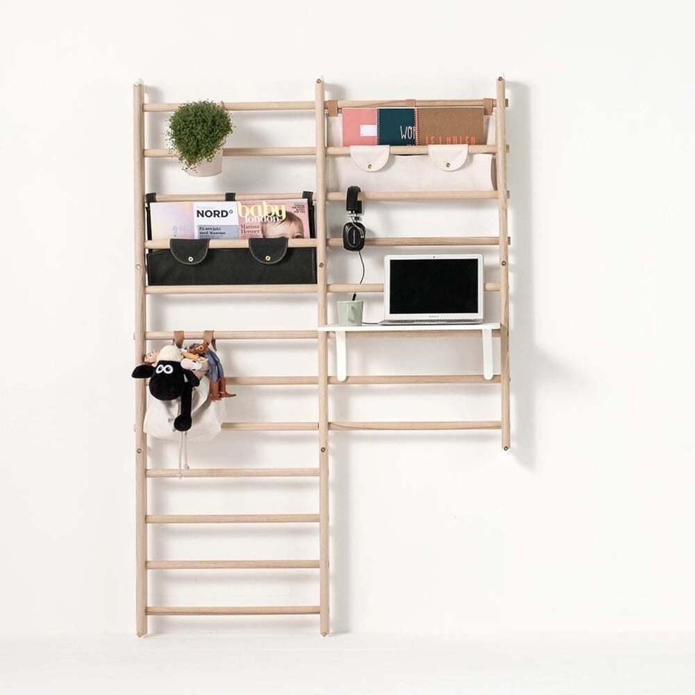 Metal aksamları pirinç, gövde ise dişbudak ağacından üretilmiş. 3 farklı boyda geliyor. Raf, saklama çantaları, düzenleyiciler, masa ve ahşap harfler gibi aksesuarlara sahip. Kolayca takılıp çıkarılan bu aksesuarlar aracılığıyla Endeløs’u size özel hale getirebiliyorsunuz. İster ufak tefek eşyalarınız için bir düzenleyici, ister çocuğunuz için bir tırmanma duvarı, isterseniz üzerinde bilgisayarınızla çalışabileceğiniz bir çalışma masası, isterseniz bir kitaplık olabiliyor. Kullanım alanı size kalmış; salonda, banyoda, çocuk odasında, antrede, banyoda, çalışma odanızda, ofiste ya da her nerede isterseniz orada kullanabiliyorsunuz