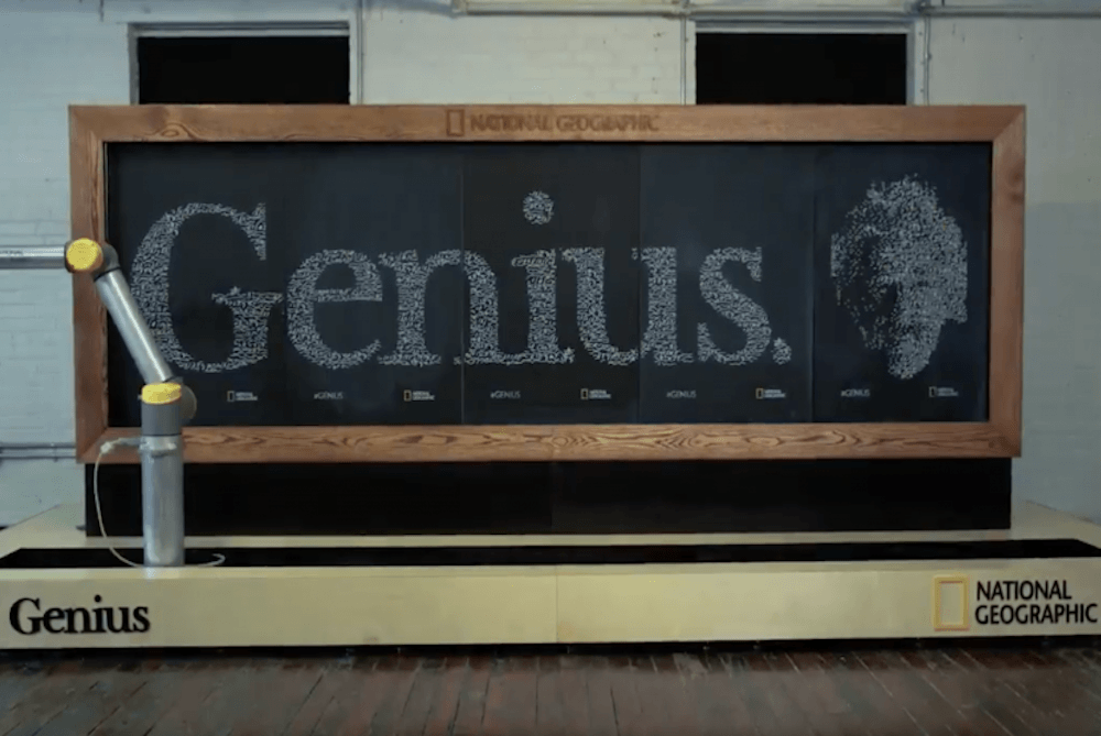 National Geographic Channel, Albert Einstein’ın yaşamını konu alan Genius adlı yeni şovunu tanıtmak için tasarladığı pazarlama aktivasyonunu SXSW’te sergiledi. Ünlü fizikçinin 2 tutkusunu, bilimi ve sanatı birleştiren proje, genel hatlarıyla Einstein’ın el yazısıyla portre çizen bir robotik koldan ve kara tahtadan oluşuyor.