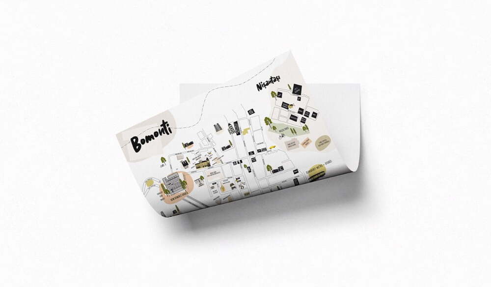 Now Bomonti Karaca merkez yerleşkesinin vurgulandığı haritada Yapı Kredi Bomontiada, Feriköy pazarı, tarihi noktalar, otopark alanları yemek ve kahve noktaları belirtiliyor. Ayrıca metro ve otobüs duraklarının yer aldığı bölüm otobüs şeklindeki görselleştirme ile vurgulanıyor. Harita, üzerinde Bomonti’nin tarihini anlatan bir yazı ile birlikte 70×70 cm boyutlarında bir kitapçık ile Karaca çalışanlarına sunuluyor.