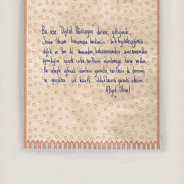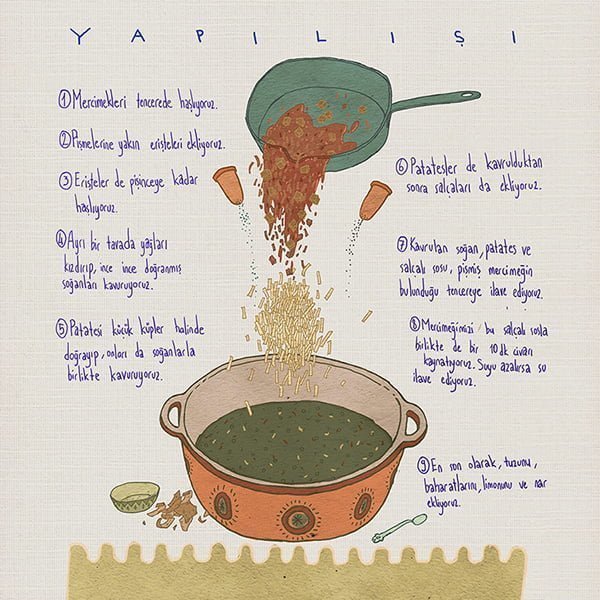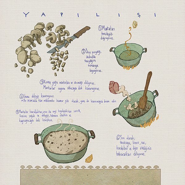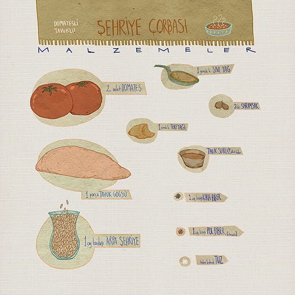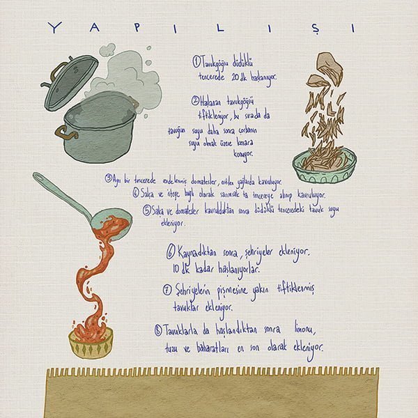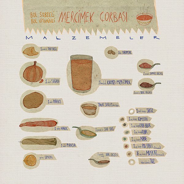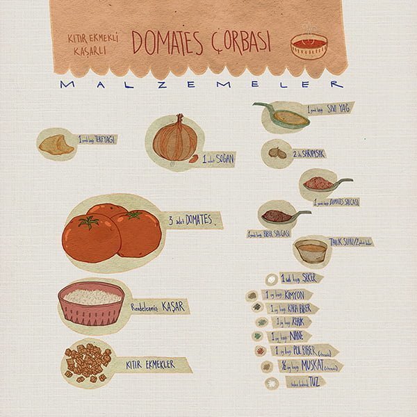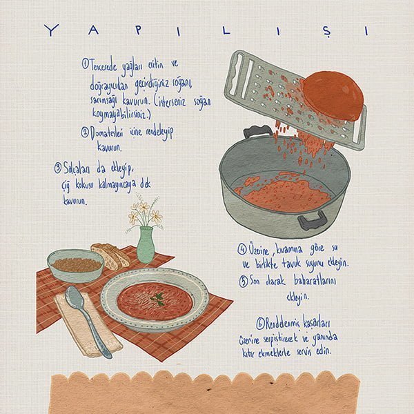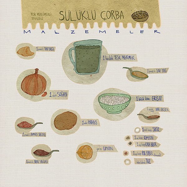Anadolu Üniversitesi Animasyon Bölümü mezunu illüstratör Ece Zeber’in yaratıcı çorba tarifleri projesi, geleneksel çorba tariflerini çizgilerden tat alarak pratik bir şekilde öğrenmeye yardımcı oluyor. Proje, Ece Zeber’in yüksek lisansa devam ettiği dönemde ortaya çıkmış. O dönemde en sevdiği ders, konu kısıtlaması olmadan çalışabildiği için dijital illüstrasyon dersiymiş ve Zeber çorba tarifleri projesini bu ders dolayısıyla hazırlamış. Sanatçı, tariflerin tamamen kendisine ait olduğunu belirtiyor. Elbette bunlar aynı zamanda evde sürekli pişirilen, annesinden ve diğer aile büyüklerinden kendisine miras kalan geleneksel tariflermiş. İllüstrasyonlarda; domates, mantar, mercimek, şehriye çorbası ve sülüklü çorba tariflerine yer veren Zeber, çorbaların lezzeti hakkında bizzat garanti veriyor.