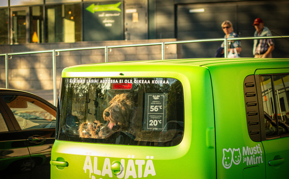 İskandinav evcil hayvan bakımı markası Musti Group; köpek ebeveynlerini, köpeklerini asla sıcak bir arabada yalnız bırakmamaları konusunda uyardığı bir kampanya başlattı. Kampanyada, sıcak çarpması semptomlarını simüle eden özel yapım bir robot köpek kullanılmış.. Robot köpek bir arabanın içine yerleştirilmiş ve hareketleri sıcaklıktaki değişikliklere göre tetiklenecek şekilde ayarlanmış. Kampanya, Musti Group için yaptığı bir diğer kampanyası Cannes 2024’te ödüle layık görülen Fin ajans Erma&Reinikainen tarafından yaratılmış. Ajans, Adoption Live isimli bu ödüllü kampanyada; Finlandiya’nın açık hava reklam ağını, ülkenin en büyük kedi barınağından canlı yayın yapılan noktalara dönüştürmüştü.