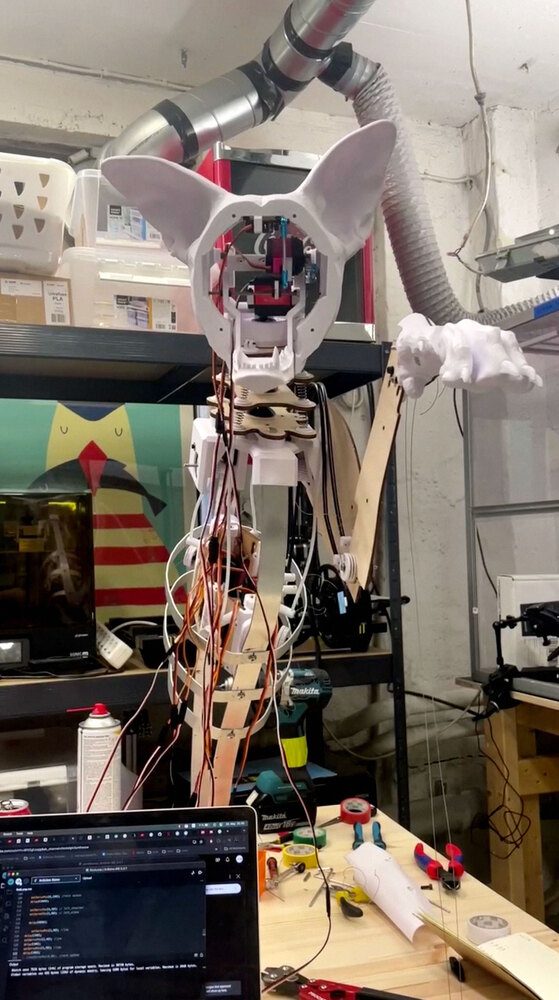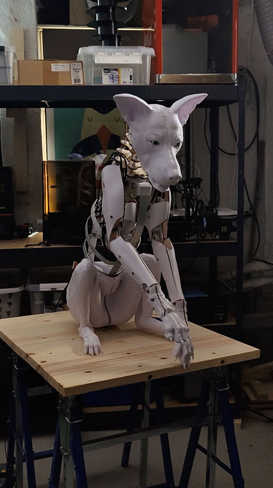 Robot; 3D baskılı parçalar, sahte hayvan kürkü ve mekatronik bir araya getirilerek üretilmiş. Köpeğin sıcak çarpması semptomlarını simüle eden önceden kodlanmış hareketleri aracın içine yerleştirilen ısı sensörleri tarafından tetikleniyor.
