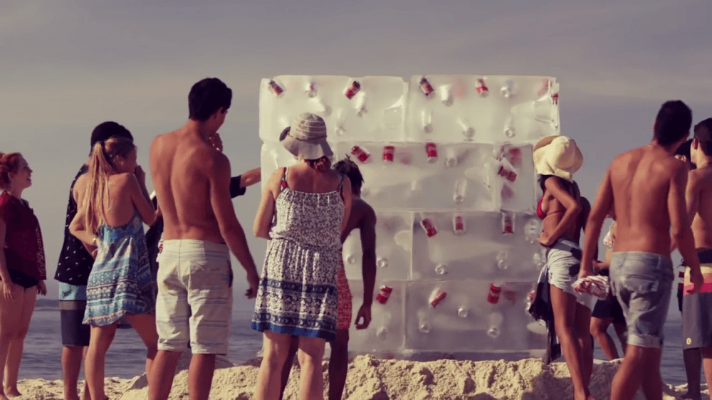 Coca-Cola’nın yeni ambalajını tanıtmak amacıyla düzenlenen aktivasyon için 500 kutu Coca-Cola; 2 metre yüksekliğinde 8 ton ağırlığında devasa bir buz kübü içinde plaja yerleştirilmiş. Aslında markanın yaptığı kısım bu kadar, geri kalan her şey plajdaki insanlara ait. Artık o buz dağının yanına gidip serinlerler mi yoksa buzun içindeki Coca-Cola’ları çıkarmaya mı çalışırlar, orasına plajda toplananlar karar vermiş.