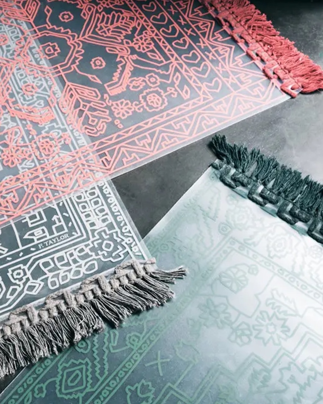 ABD’li tasarımcı F. Taylor Colantonio’nun uluslararası tasarım dünyasında büyük yankı uyandıran Magic Carpet (sihirli halı) serisi, Colantonio’nun halı kavramına getirdiği radikal bir yorum. Architectural Digest, T Magazine ve Elle Decor gibi yayınlarda öne çıkarılan bu halılar, mevcut zeminleri saklamak yerine tamamlamayı hedefleyen şeffaf yapılarıyla ezber bozuyor. Batı Yakası’nda özel olarak geliştirilen, kristal berraklığında, yumuşak, esnek, UV dayanımlı ve fitalat içermeyen lüks bir malzemeyle üretilen Magic Carpet’lar, geleneksel yün halılar gibi tamamen biyobozunur özellikte.