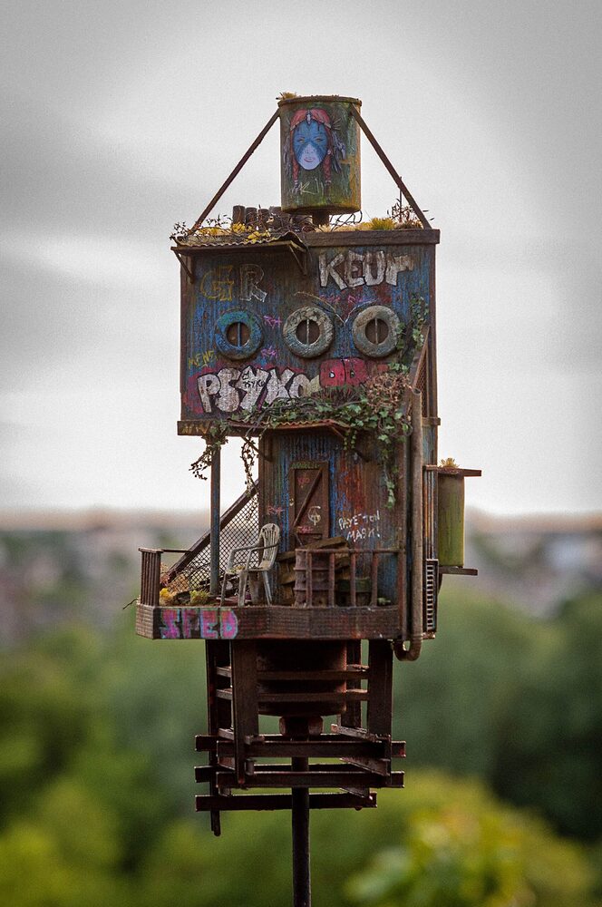 Simon Laveuve sarmaşıklar, yosunlar ve grafitilerle kaplı bu evrende genelde dikey yapılar inşa etmiş. Bu yapılar, hayatta kalanların son sığınakları gibi tasvir edilmiş. Yüksek ve kolay erişilemez oluşlarıyla özellikle su baskını gibi felaket senaryolarını çağrıştırıyorlar.