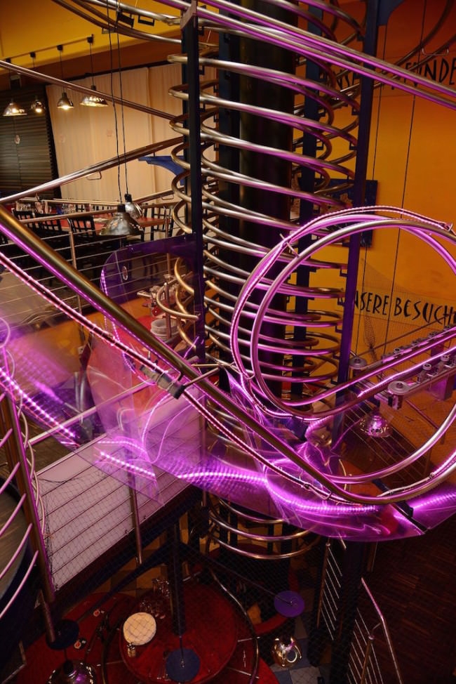 Almanya, Nürnberg’deki Rollercoaster Restaurant olarak nam salmış ´s Baggers isimli restoran, akşam yemeklerine biraz adrenalin ve eğlence katmak istemiş ve müşterilerine eğlenceli bir sürpriz hazırlamış: Restoranda yemekler Roller Coaster’la (Hız treni) servis ediliyor.