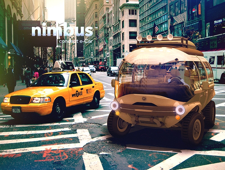 Otomotiv endüstrisi ne yöne doğru evrilirse evrilsin konsept tasarımlar çizgi dışı kalıp ilham vermeye devam ediyor. Sanatçı ve tasarımcı Eduardo Galvani‘nin geliştirdiği konsept e-araç Nimbus, doğaya verdiği zararı asgari seviyede tutuyor. Sürdürülebilirliğin önemini kavrayan şirin tasarımlı Nimbus, güneş panelleriyle enerji sağlıyor. 130Kw ile çalışan araç lityum iyon pil bataryaya sahip.